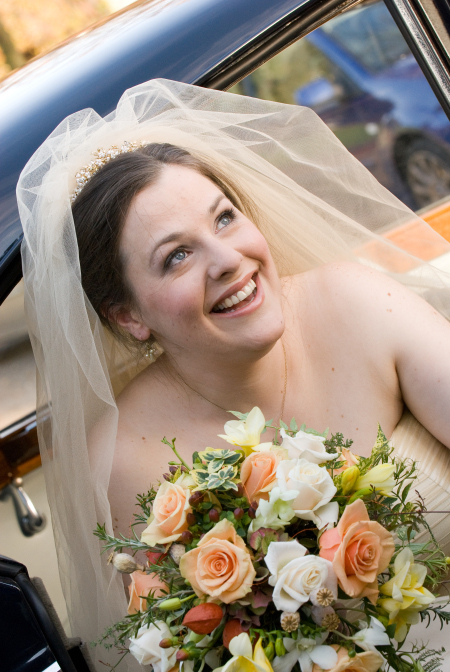 This beautiful bouquet of apricot and cream roses, freesias , hypericom berries and poppy heads looked amazing in our pewter frame Before