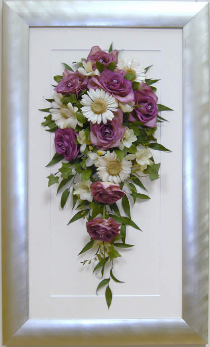 "Hi, just wanted to say thank you for my bouquet which arrived in an exceptionally large well packed box, had to be, with an extra large specially made frame, it was like Christmas all over again.The bouquet arrived in great condition and looks fantastic. I have to say that your service was personal yet very professional so thanks for a great reminder."